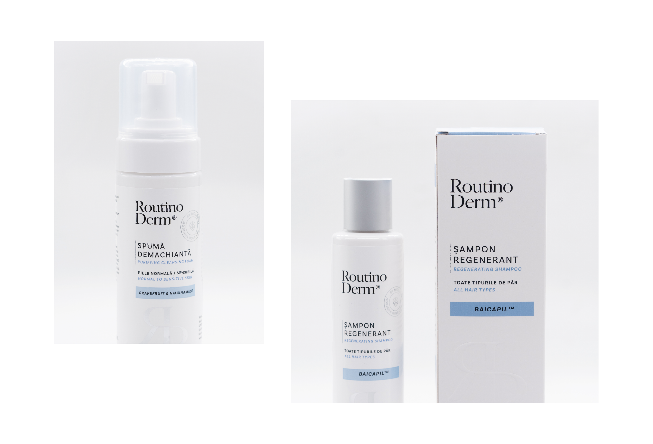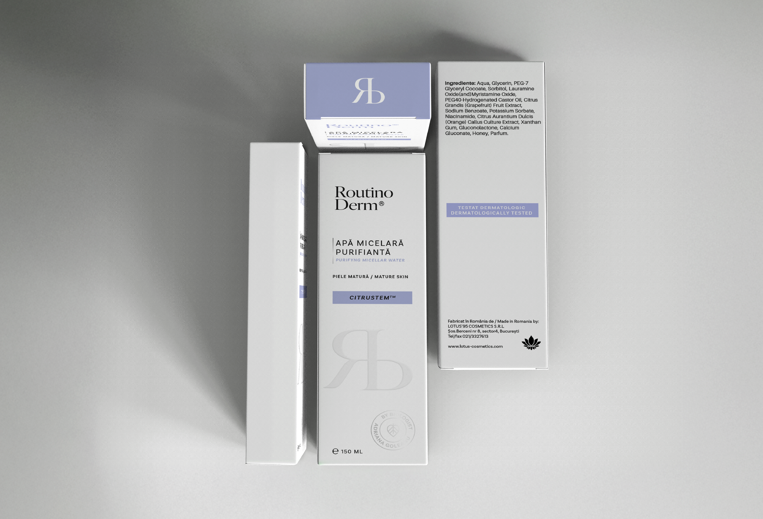 RoutinoDerm este o linie dermato-cosmetică construită pe ideea de rutină simplă, eficientă și ușor de urmat. Proiectul de packaging îmbină estetica medicală cu eleganța cosmetică, folosind un design curat, precis și ușor de navigat. Simbolul RD embosat pe cutii și accentele de folio argintiu transmit rafinament și încredere, în timp ce structura vizuală minimală subliniază caracterul științific al brandului. Rezultatul este o identitate premium, recognoscibilă și memorabilă, creată pentru un public care caută eficiență, simplitate și calitate.